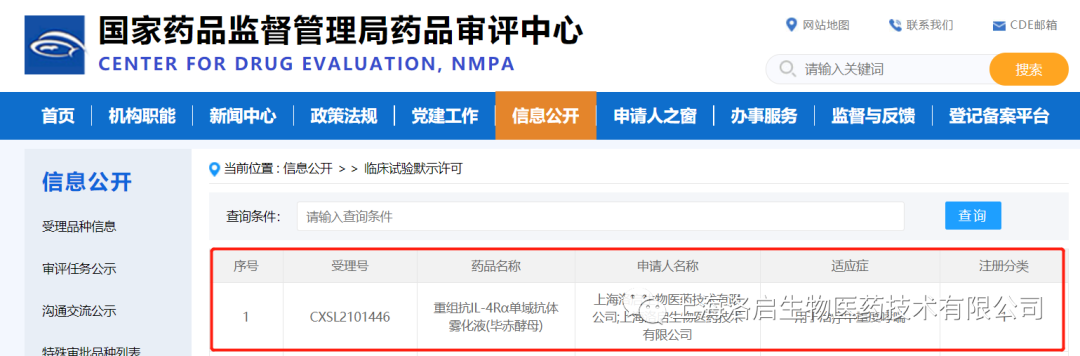 2022年01月26日,中国国家药品监督管理局药品审评中心(CDE)公示,上海1929cc威尼斯(中国)生物医药技术有限公司一款针对中重度哮喘治疗的核心药物LQ036——重组抗IL-4Rα单域抗体雾化液(毕赤酵母)的临床试验申请(IND)正式取得批准(通知书编号:2022LP00124),从IND受理到获批仅用2个月,此间无发补项。