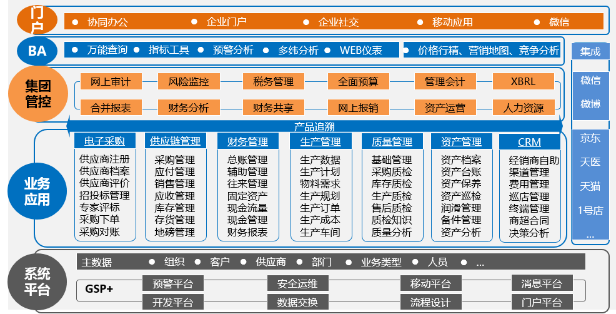 金数据海岳快速消费品行业解决方案主要针对食品、饮料、酒类等行业用户而设计,以工作流程为基础、业务处理为平台、营销管理为重点,体现物流、资金流和信息流的有机统一,主要包括集团管理、销售与分销、CRM管理、条码管理、采购管理、库存管理、质量管理、产品追溯、人力资源、财务管理等应用,并实现与第三方电商平台集成,可以与移动商务进行集成,实现手机订单的下单与数据收集。