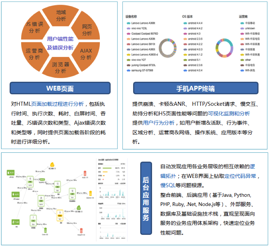 应用质量管控,金数据应用质量管控系统给予对应用全生命周期和全事务过程的质量托管。从用户终端、后台服务到IT设备层的端到端全程监控;应用性能劣化预警;应用性能分析与根原因定位;用户体验分析和问题过程回放;用户活性分析、转化率分析;